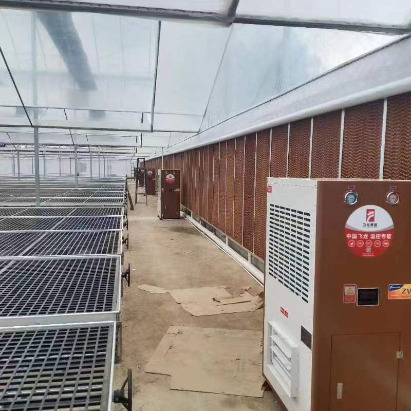 二、機(jī)器采用下端百葉窗風(fēng)口吹風(fēng),上端進(jìn)氣口方向面向棚內(nèi)的機(jī)器布局,實(shí)現(xiàn)了 更有利于植物生長(zhǎng)的溫度環(huán)境,且更節(jié)能。